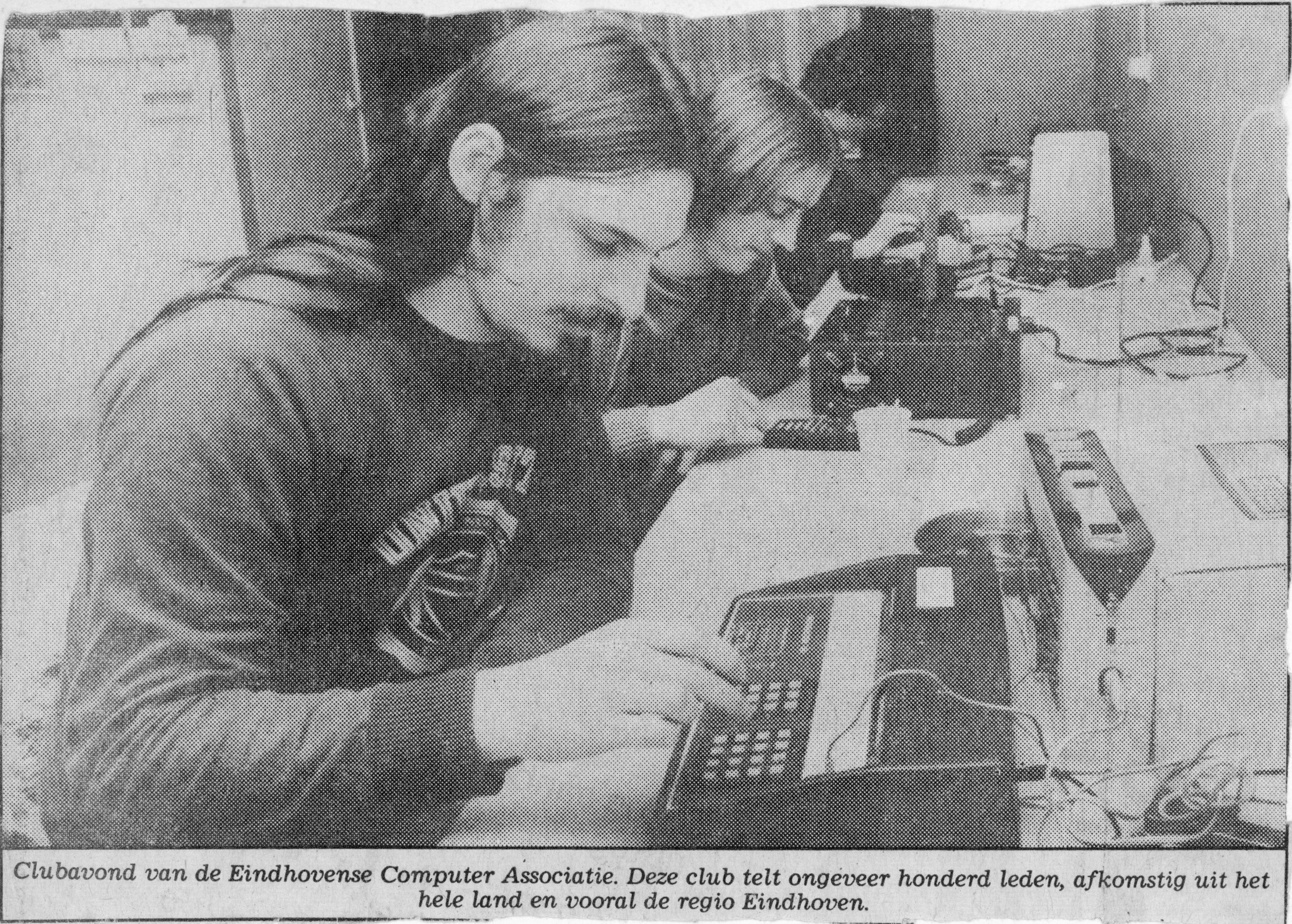 | PHUNSY (Philipse Universal System) is a micro computer system with the Signetics 2650 CPU I designed and built around 1980. I just thought it's fun to have a web-page about it here. It shows how times have changed in a few decades. The PHUNSY was copied by a few people. One of them is my friend Ben Postema who also documented the system. This documentation was also issued in the ECA (Eindhovense Computer Associatie) bulletin back then. A big disadvantage of building your own hardware is the fact that there is not much software available. I had to write almost everything myself... The MicroWorld Basic Interpreter was adapted to run on the PHUNSY. (News paper photo Ben Postema & me :) @ ECA ~1980) | |